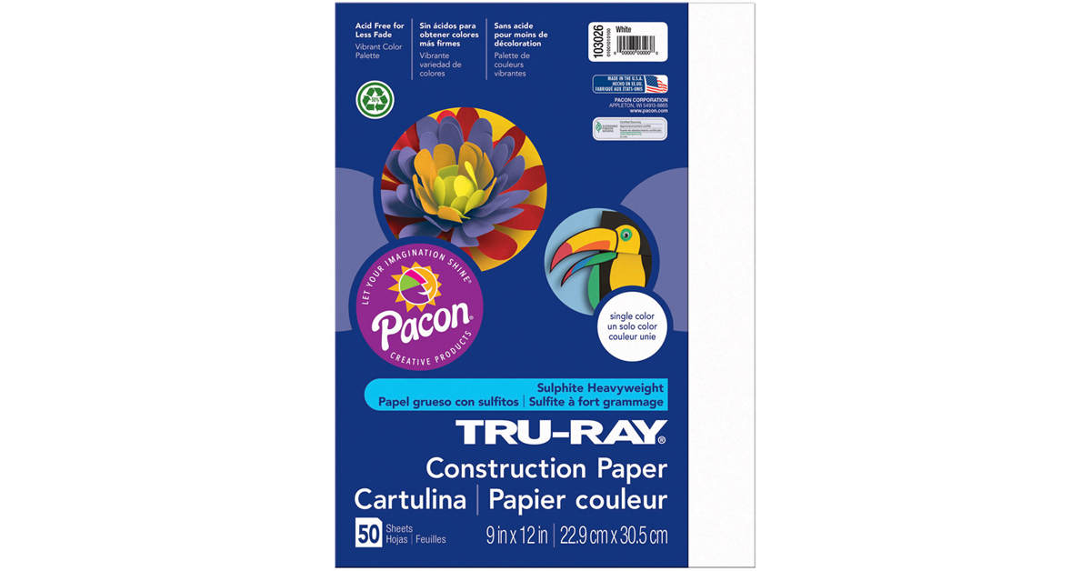 Pacon 103026 Tru-Ray Construction Paper, 76 Lbs, 9 X 12, White, 50 Sheets/Pack