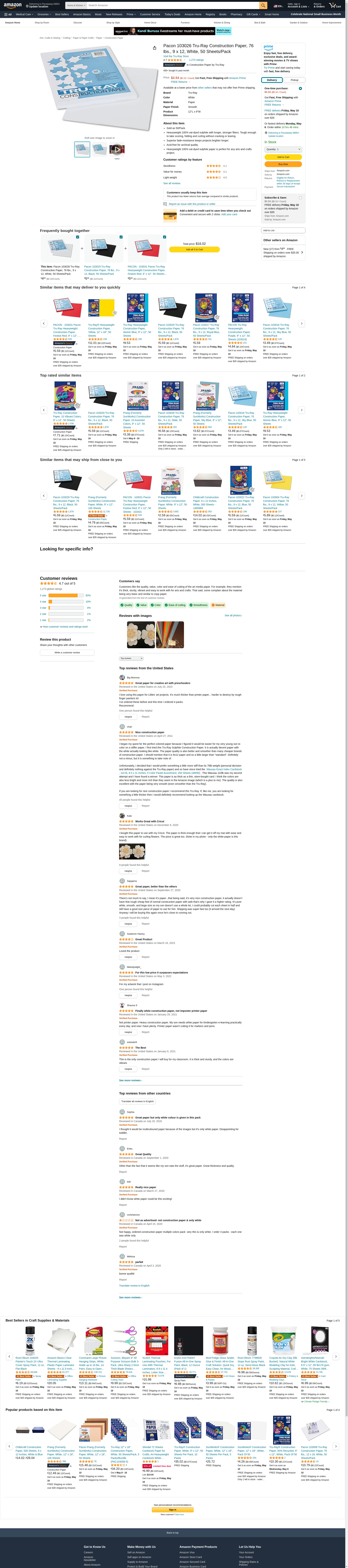 Pacon The Amazing Construction Paper White (PK) x Quantity of 1