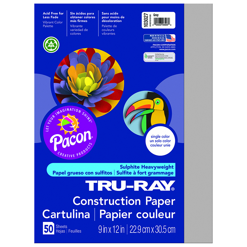Pacon Tru-Ray Construction Paper, Gray, 9" x 12", 50 Sheets Per Pack, 10 Packs