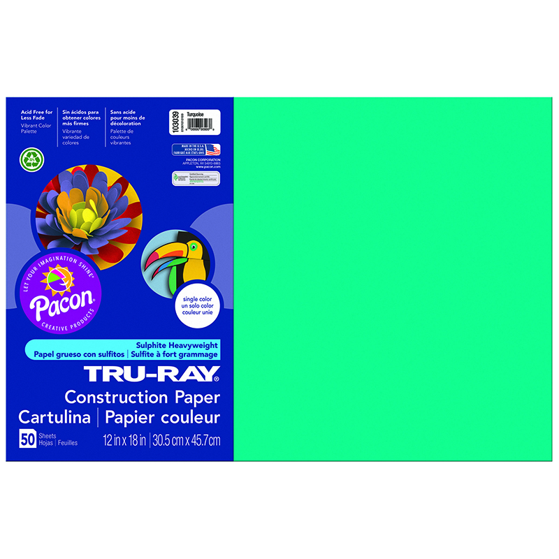 Pacon PAC103039BN 12 x 18 in. Tru Ray Turquoise Construction Paper - 50 Sheet per Pack - Pack of 5