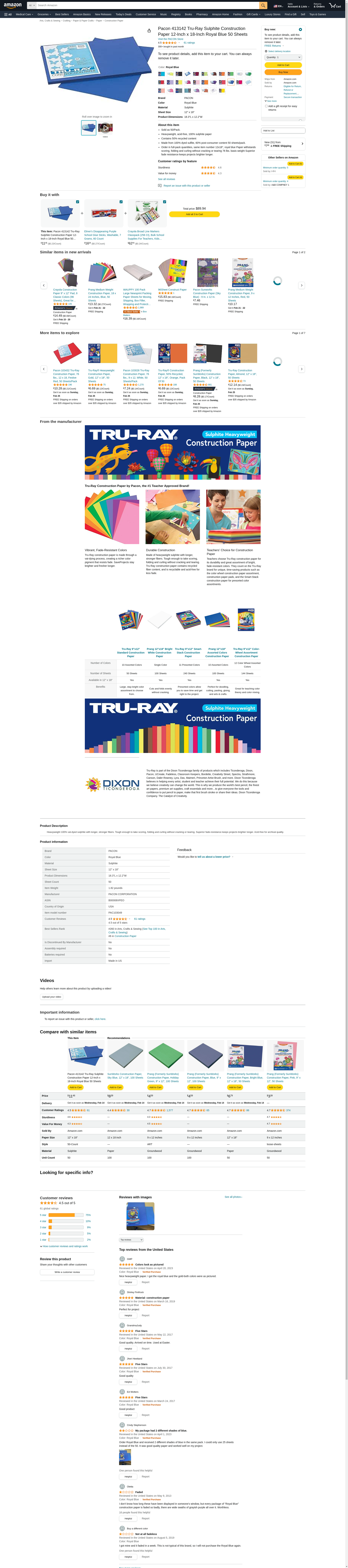 Pacon 413142 Tru-Ray Sulphite Construction Paper 12-Inch x 18-Inch Royal Blue 50 Sheets