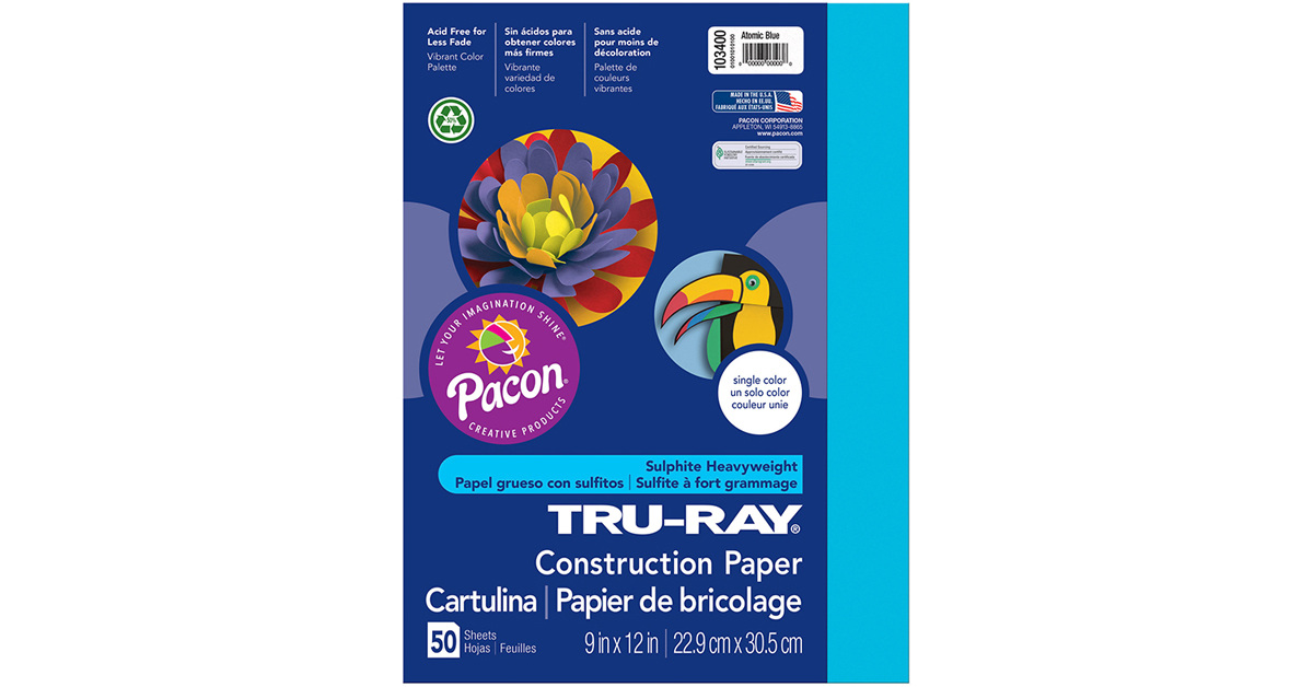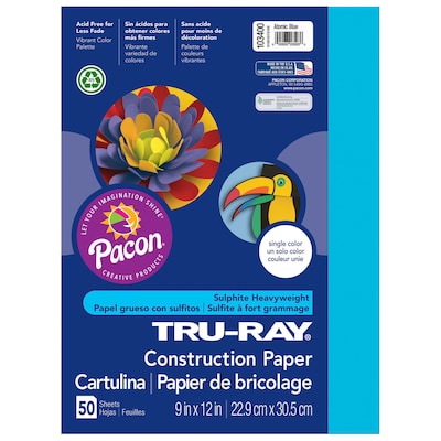 Pacon PAC103400 Tru-Ray Construction Paper, 9" x 12", Atomic Blue, 50 Sheets