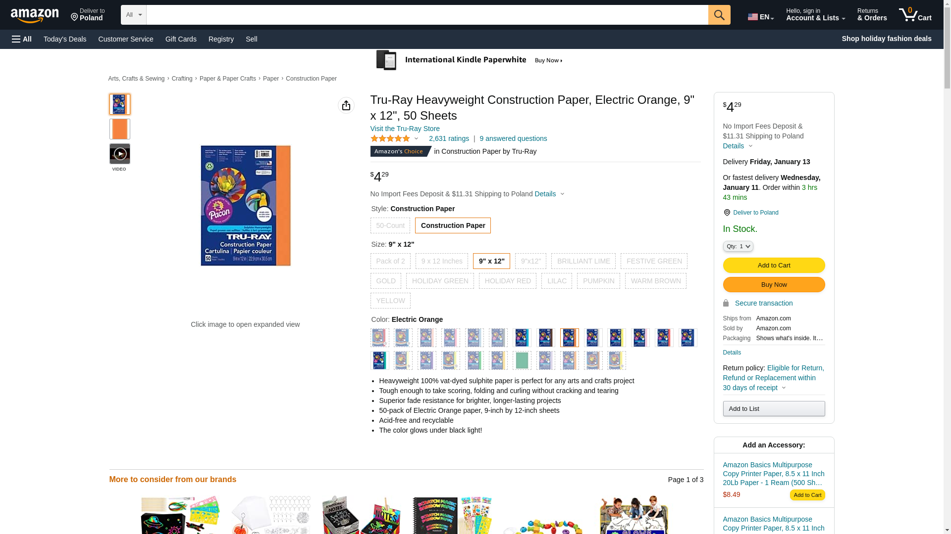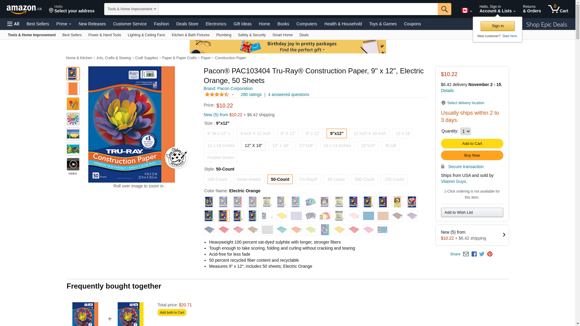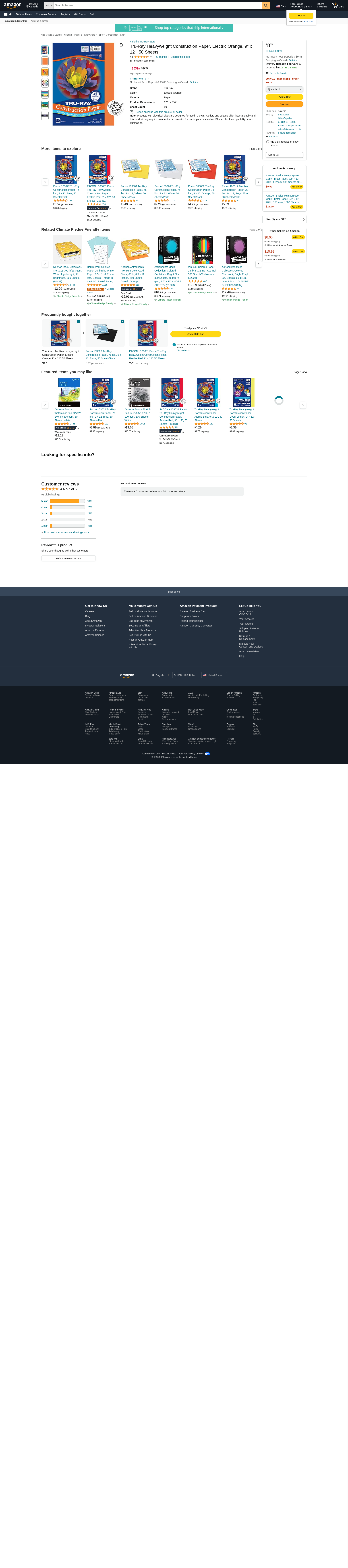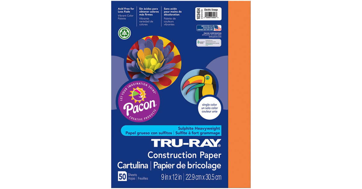 Pacon PAC103404 Tru-Ray Construction Paper, 9" x 12", Electric Orange, 50 Sheets