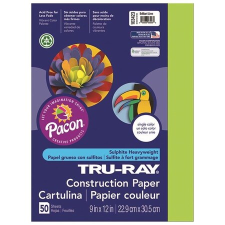 Pacon PAC103423BN 9 x 12 in. Tru Ray Brilliant Lime Construction Paper - 50 Sheet per Pack - Pack of 5
