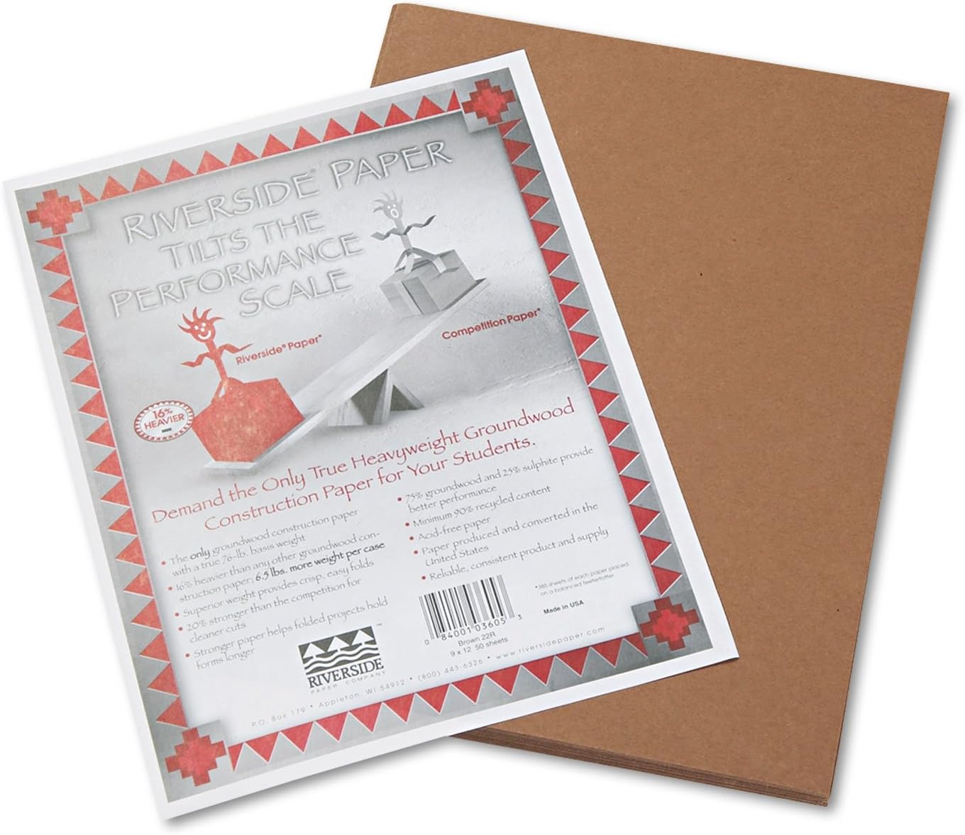 Pacon 103605 Riverside Construction Paper, 76 lbs., 9 x 12, Brown, 50 Sheets/Pack