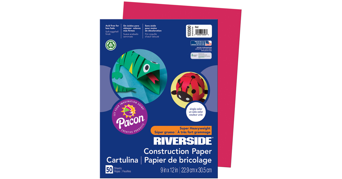 Pacon 103590 Riverside Construction Paper, 76 Lbs., 9 X 12, Red, 50 Sheets/Pack