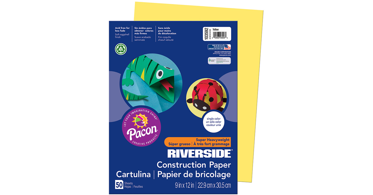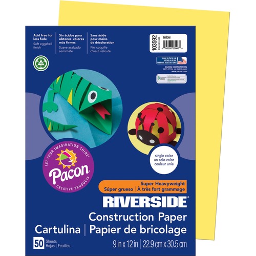 Pacon 103592 Riverside Construction Paper, 76 lbs, 9 x 12, Yellow, 50 Sheets/Pack
