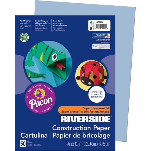 Pacon 103599 Riverside Construction Paper, 76 lbs, 9 x 12, Light Blue, 50 Sheets/Pack