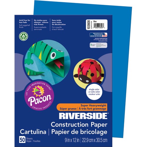 Pacon 103600 Riverside Construction Paper, 76 lbs, 9 x 12, Blue, 50 Sheets/Pack