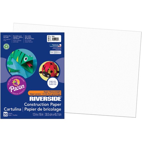 Pacon 103613 Riverside Construction Paper, 76 lbs, 12 x 18, White, 50 Sheets/Pack