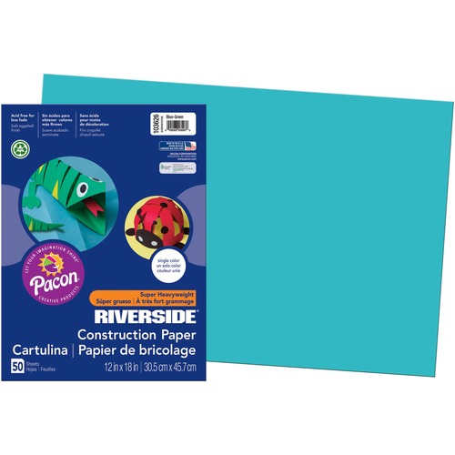Pacon 103626 Riverside Construction Paper, 76 lbs, 12 x 18, Blue-Green, 50 Sheets/Pack