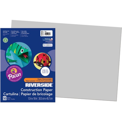 Pacon 103632 - Riverside Construction Paper, 76 lbs., 12 x 18, Gray, 50 Sheets/Pack-PAC103632