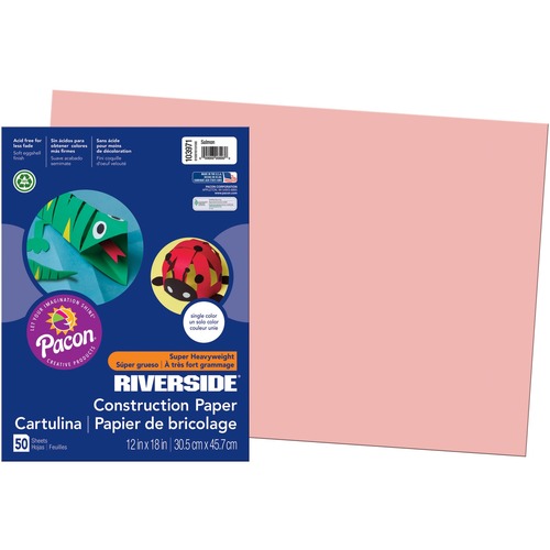 Pacon 103971 Riverside Construction Paper, 76 Lbs., 12 X 18, Salmon, 50 Sheets/Pack