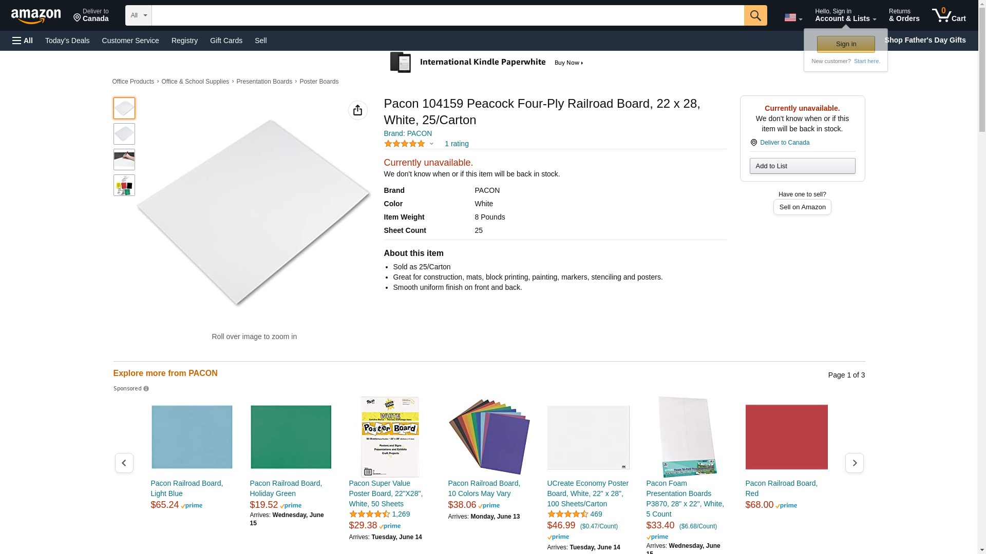 Pacon 104159 Peacock Four-Ply Railroad Board, 22 X 28, White, 25/Carton