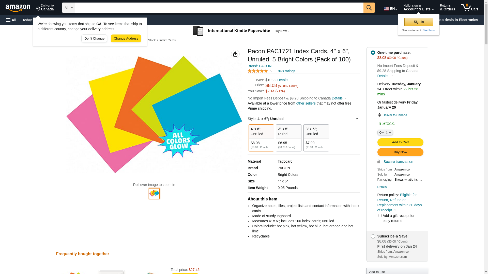 Pacon PAC1721 Index Cards, 4