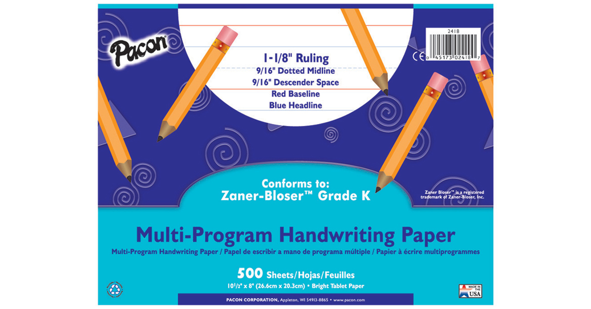 - Rulings conform to the Zaner-Bloser (Grade Pre-K and K) handwriting program