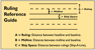 Rulings conform to Zaner-Bloser and/or D'Nealian handwriting programs. Ruled with a 4-1/4" picture space on both sides. For grades 1, 2 & 3. Size: 12 x 9; Paper Color(s): White; Paper Weight: 16 lb.