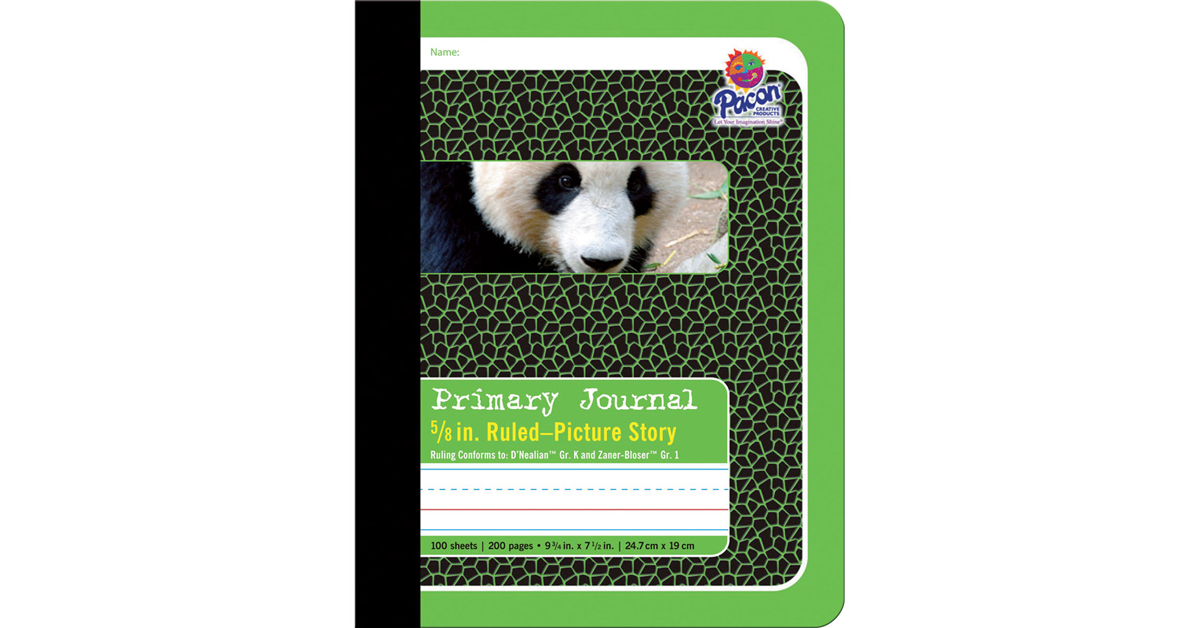 Pacon Primary Composition Book Bound Picture Story Ruled, 5/8-in. Ruled, 100 Sheets, Green (2428)