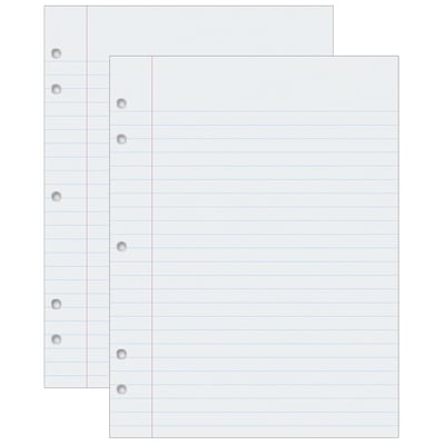 PACONĀ® Composition Paper, White, 5-Hole Punched, Red Margin, 3/8" Ruled, 8" x 10-1/2", 500 Sheets Per Pack, 2 Packs