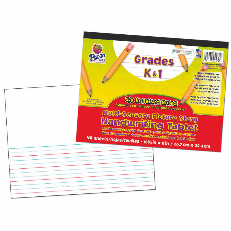 - Multi-sensory raised ruled paper has raised headlines and baselines which help students stay within the guidelines. It helps teach handwriting through two senses, sight and touch.