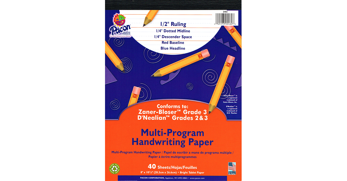 - Ruling conforms to D'Nealian Grades 2 & 3 and Zaner-Bloser Grade 2