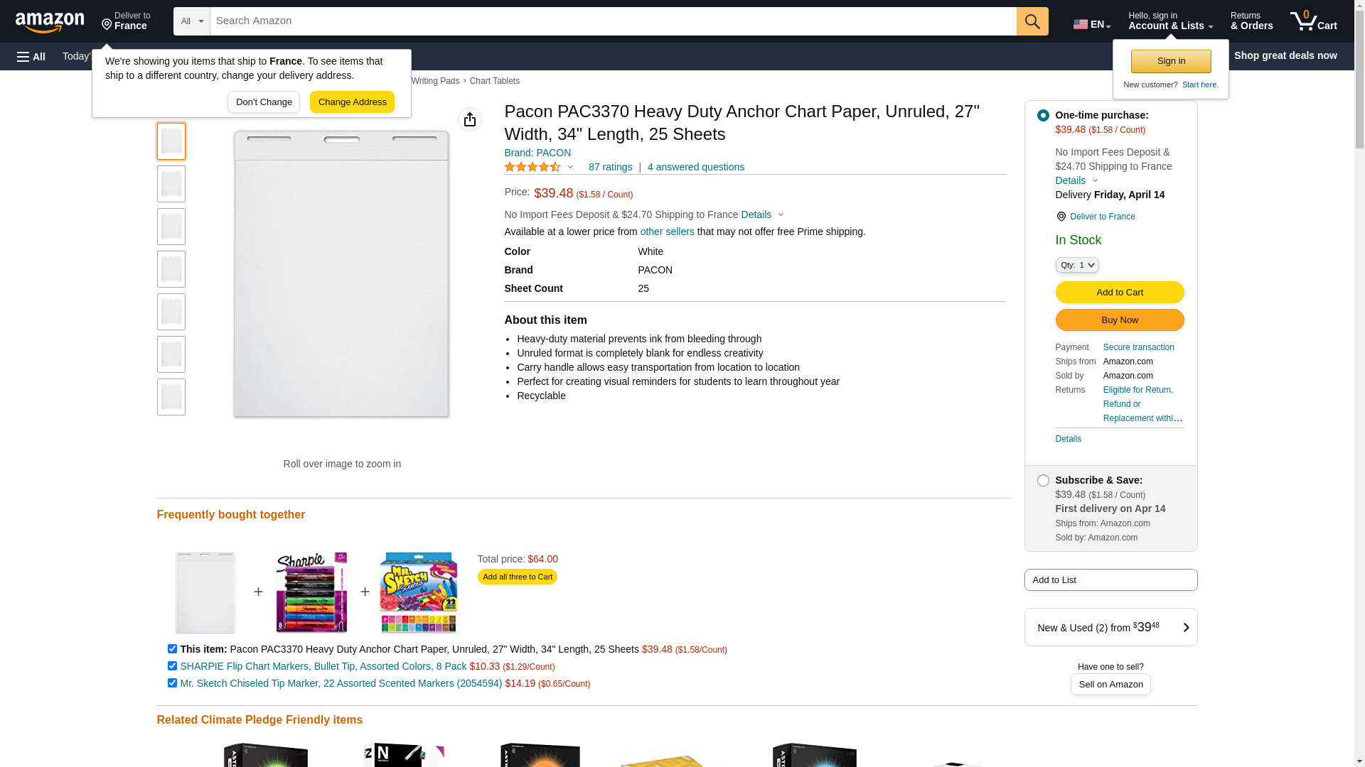 Pacon, 3370, Heavy Duty Anchor Chart Paper, 27" x 34", 25 Sheets, White, 4/CT