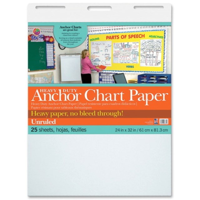 Pacon PAC3371 Heavy Duty Anchor Chart Paper, Unruled, White, 24" Width, 32" Length, 25 Sheets