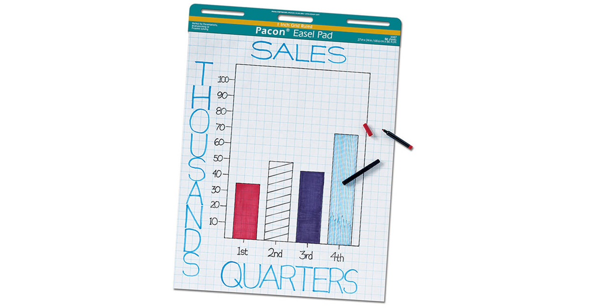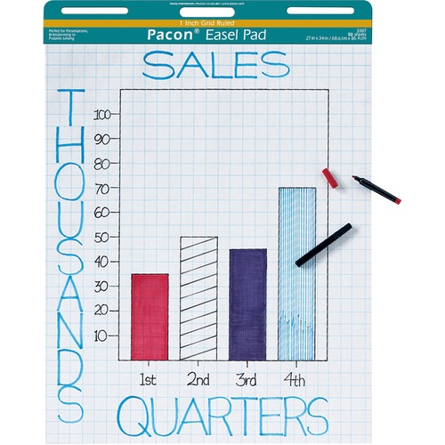 Pacon 3387 Easel Pad,Perforated,1-Inch Grid Ruled,27x34-Inch,50 Sheets,White
