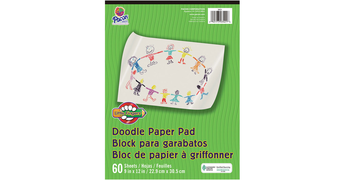 Pacon® Little Fingers® Doodle Pad, 9"x12", White, 12 Packs of 60 Sheets Per Pack (PAC3421) | Quill.com