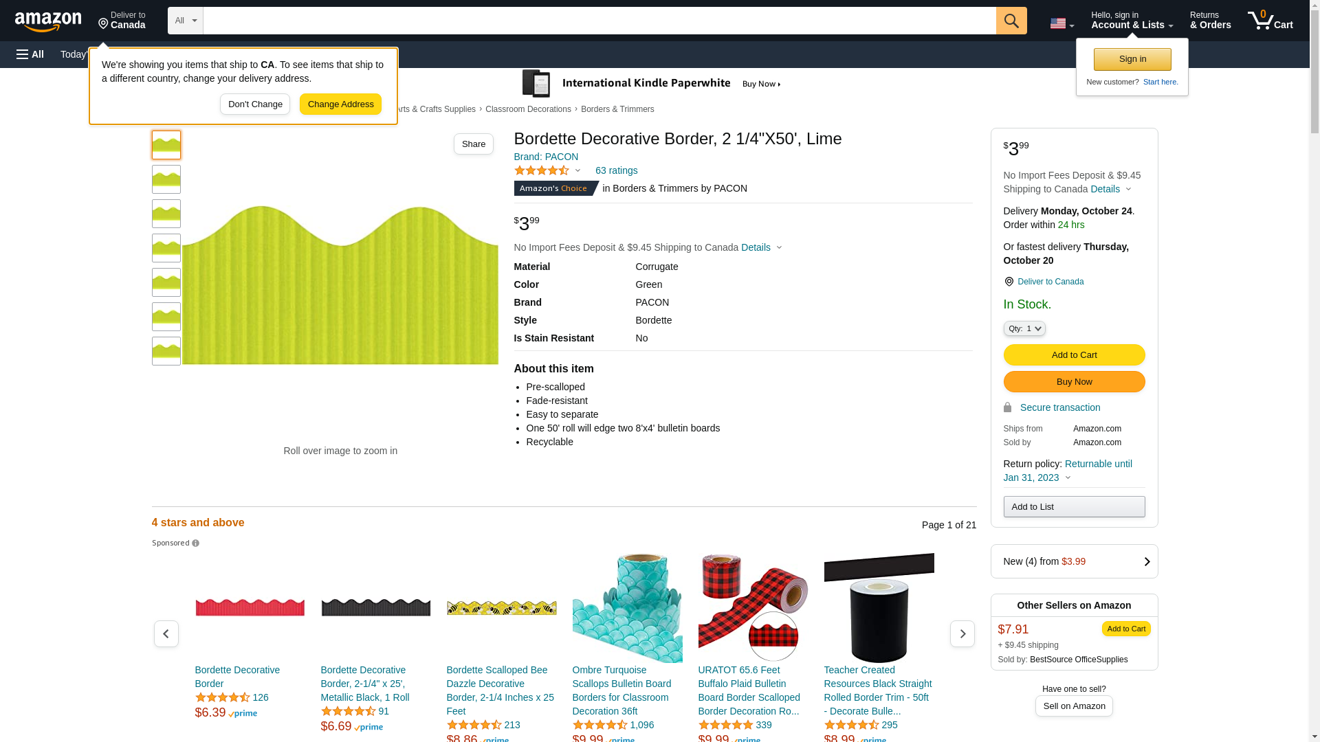 Bordette Decorative Border, 2 1/4"X50', Lime