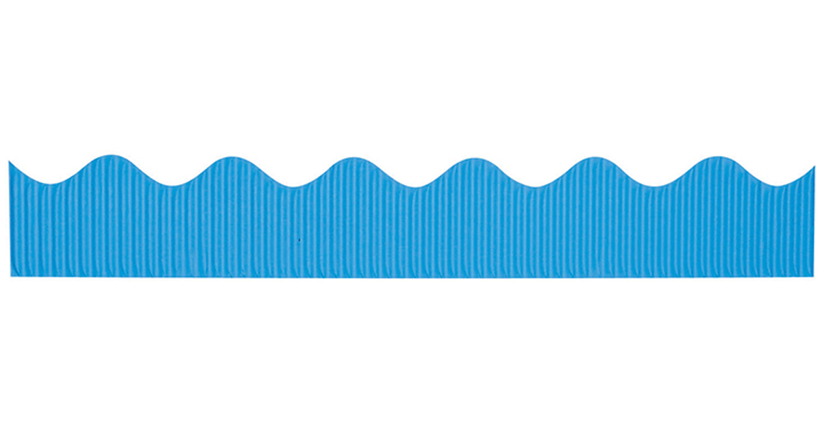 Dress up any bulletin or display board with this festive decorative border. Corrugated, scalloped design delivers the appearance of a fine framed edge. Rich, fade-resistant colors help enliven any environment. Color(s): Brite Blue Height: 2 1/4" Length: 50 ft Quantity: 1 roll. Unit of Measure : Roll