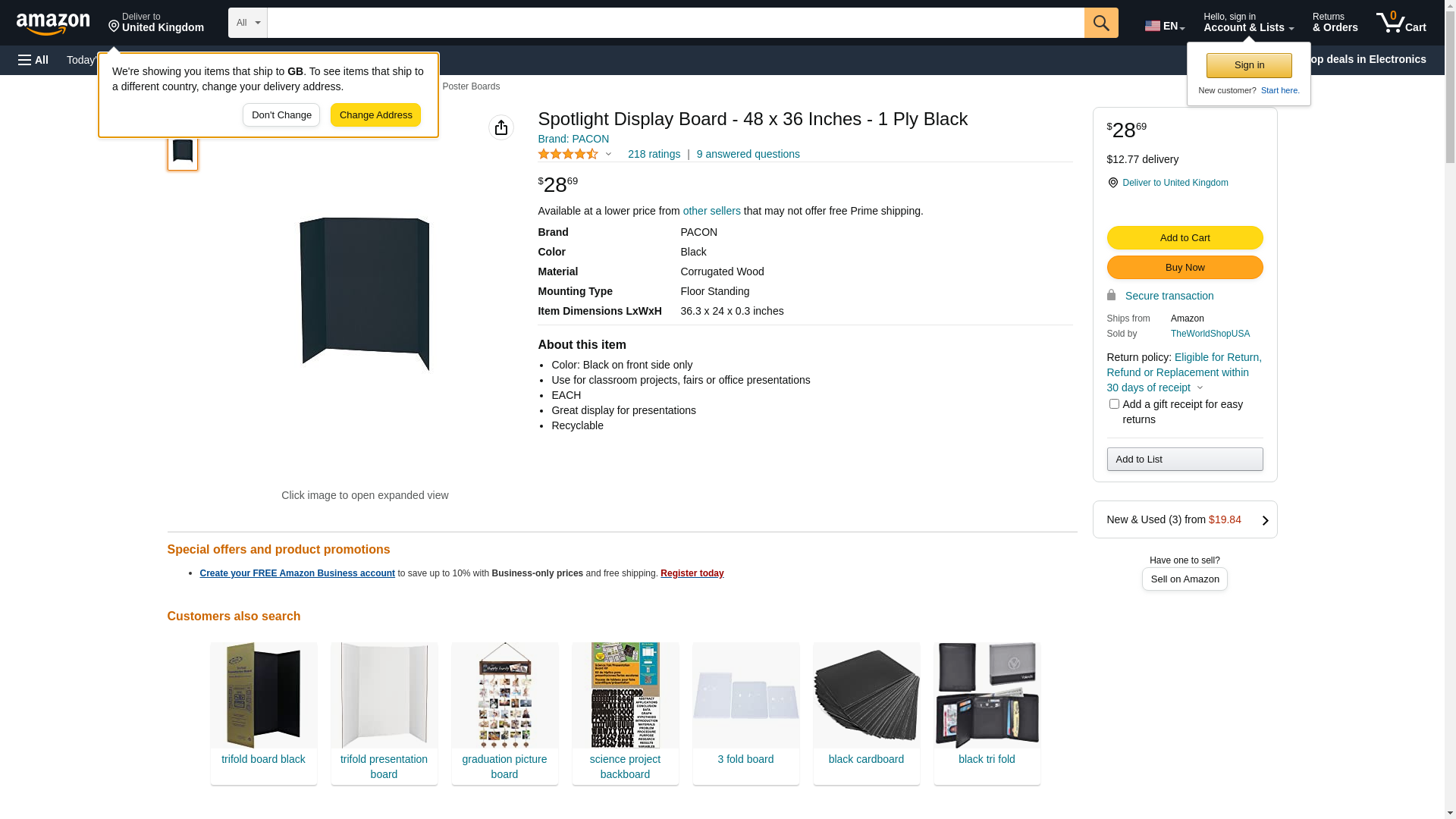 PACON CORPORATION 3766 Spotlight Corrugated Presentation Display Boards, 48 x 36, Black, 24/Carton