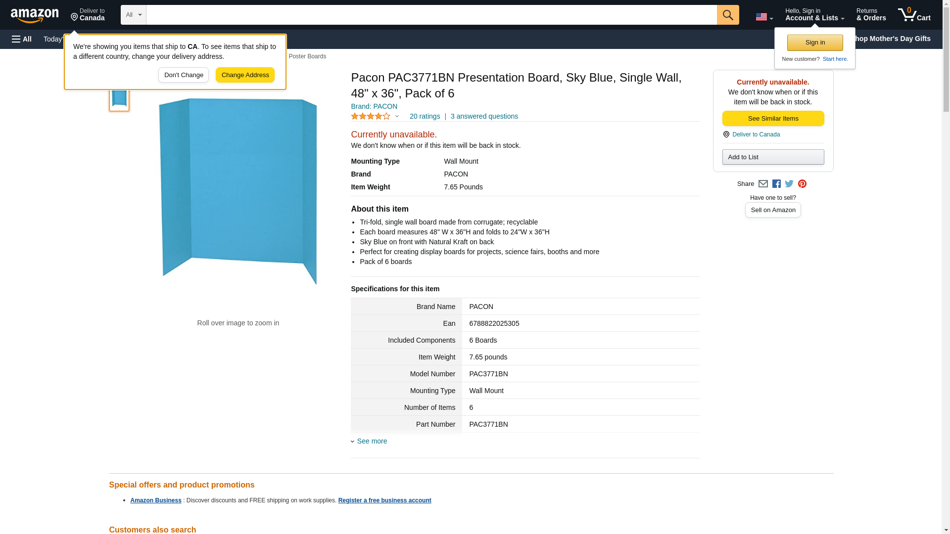 Pacon® PAC3771BN Presentation Board, Sky Blue, Single Wall, 48" x 36", Pack of 6