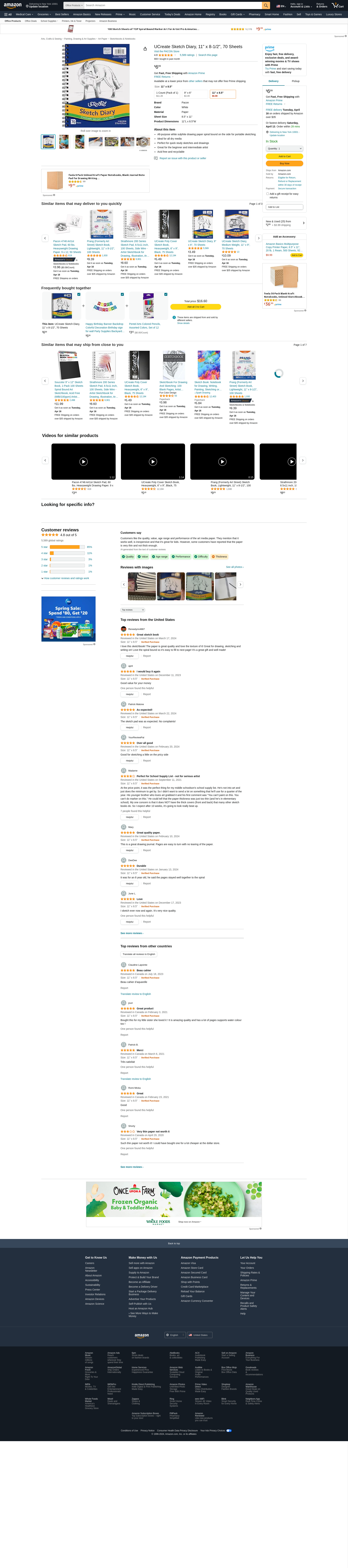 UCreate Sketch Diary, 11" x 8-1/2", 70 Sheets