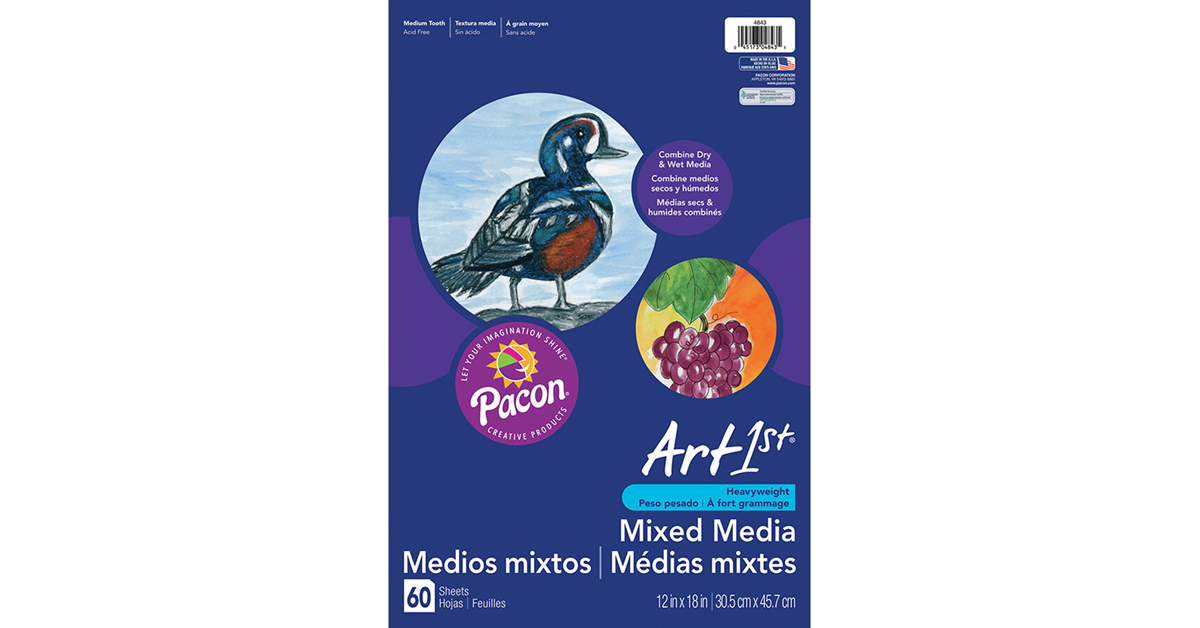Pacon PAC4843 Art1st Mixed Media Art Paper, 12" x 18", White, 60 Sheets