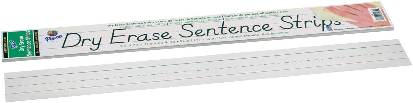 Pacon Dry-Erase Sentence Strips, White, Pack of 30