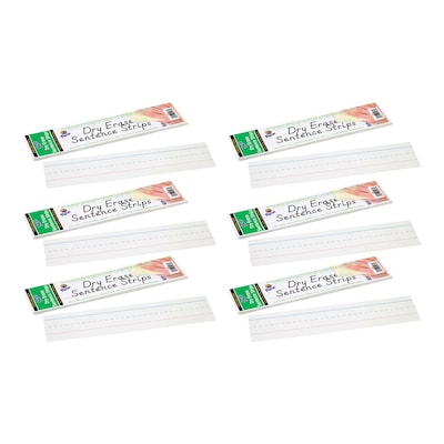 Dry Erase Sentence Strips, White, 1-1/2" X 3/4" Ruled, 3" x 12", 30 Per Pack, 6 Packs