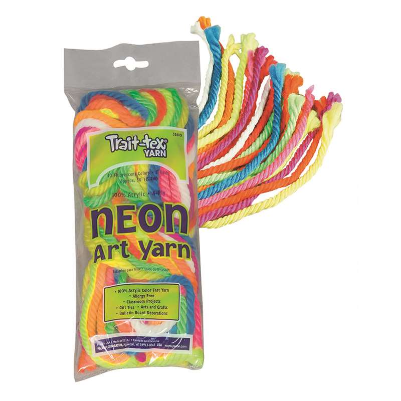 Trait-tex® PAC52610BN Art Yarn, Neon Colors & White, 5' Strands, 10 Strands Per Pack, 3 Packs