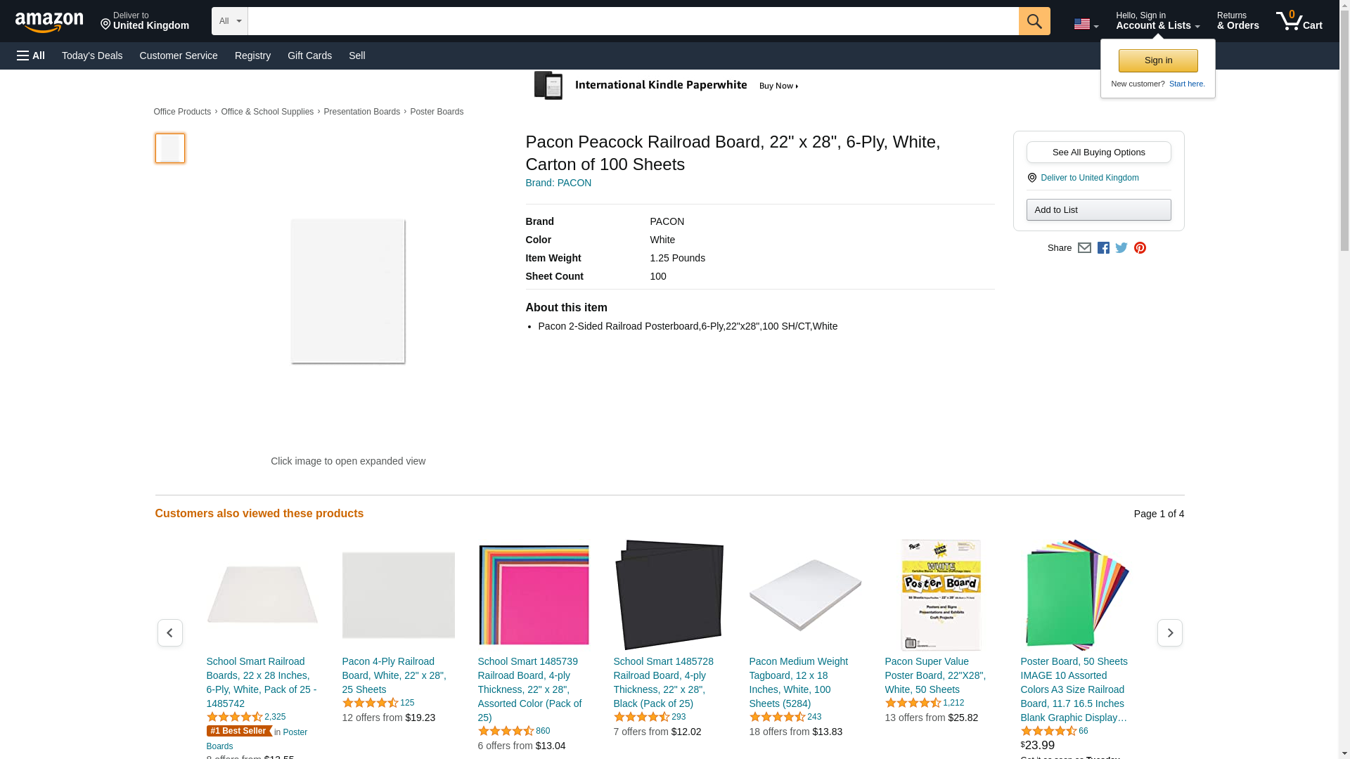 - Pacon 2-Sided Railroad Posterboard,6-Ply,22"x28",100 SH/CT,White