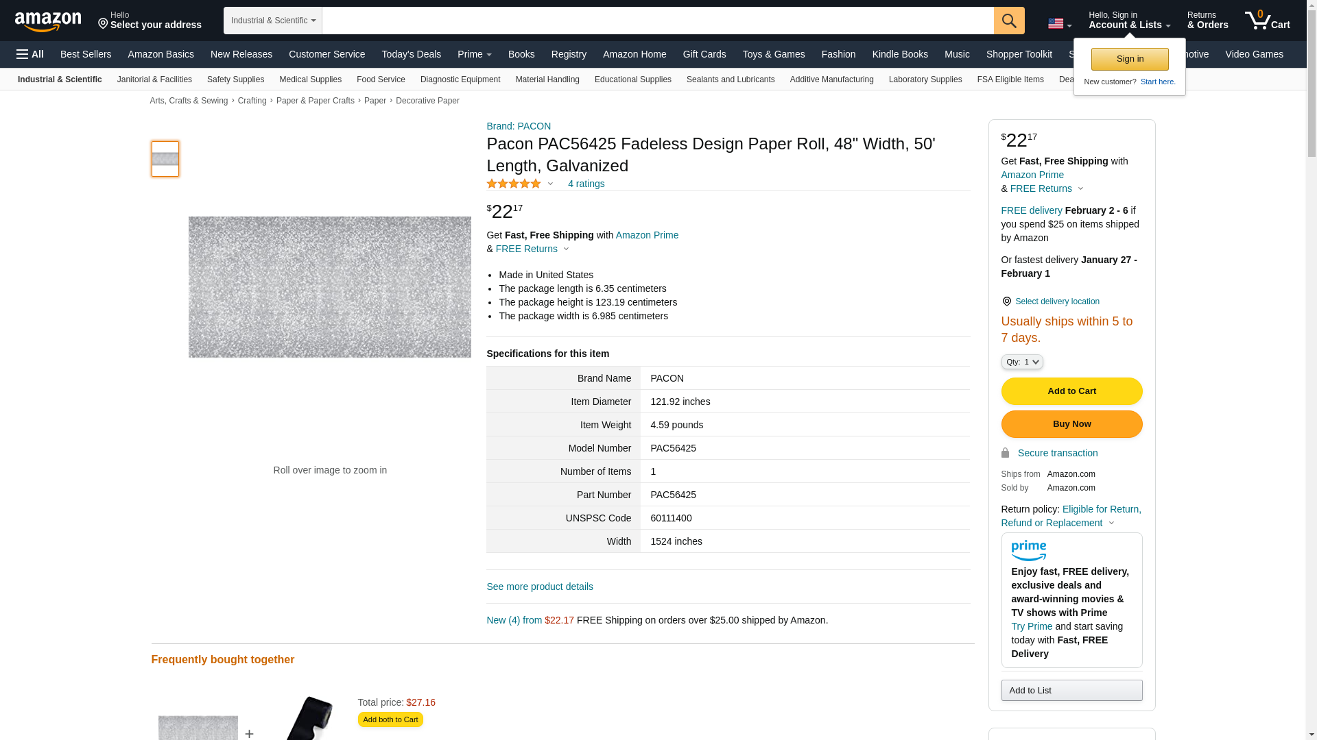 Pacon PAC56425 Fadeless Design Paper Roll, 48" Width, 50' Length, Galvanized