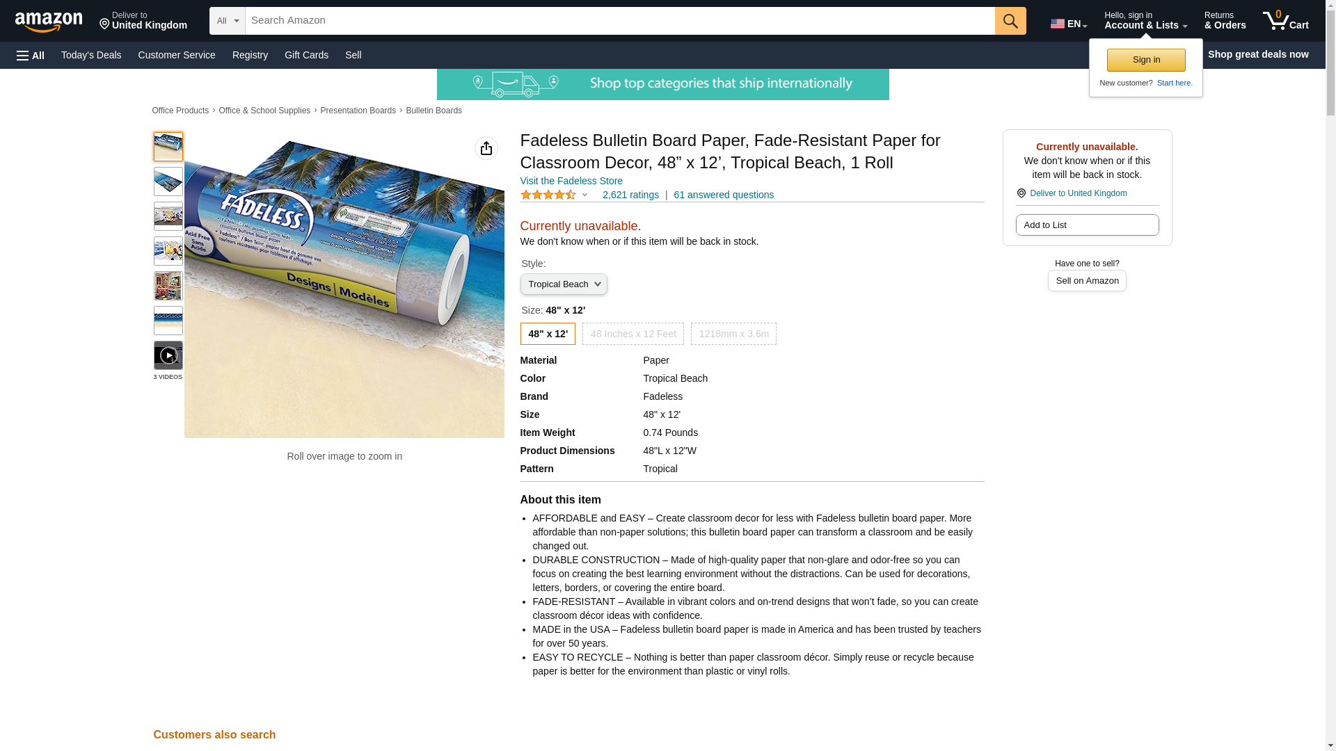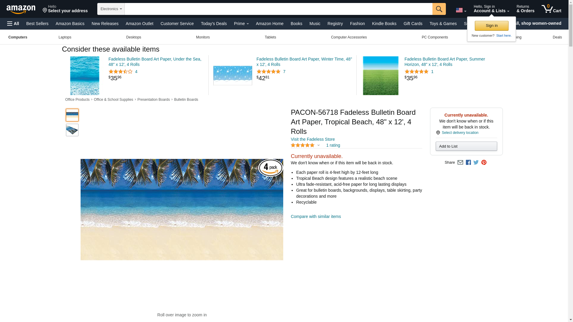 PACON-56718 Fadeless Bulletin Board Art Paper, Tropical Beach, 48" x 12', 4 Rolls