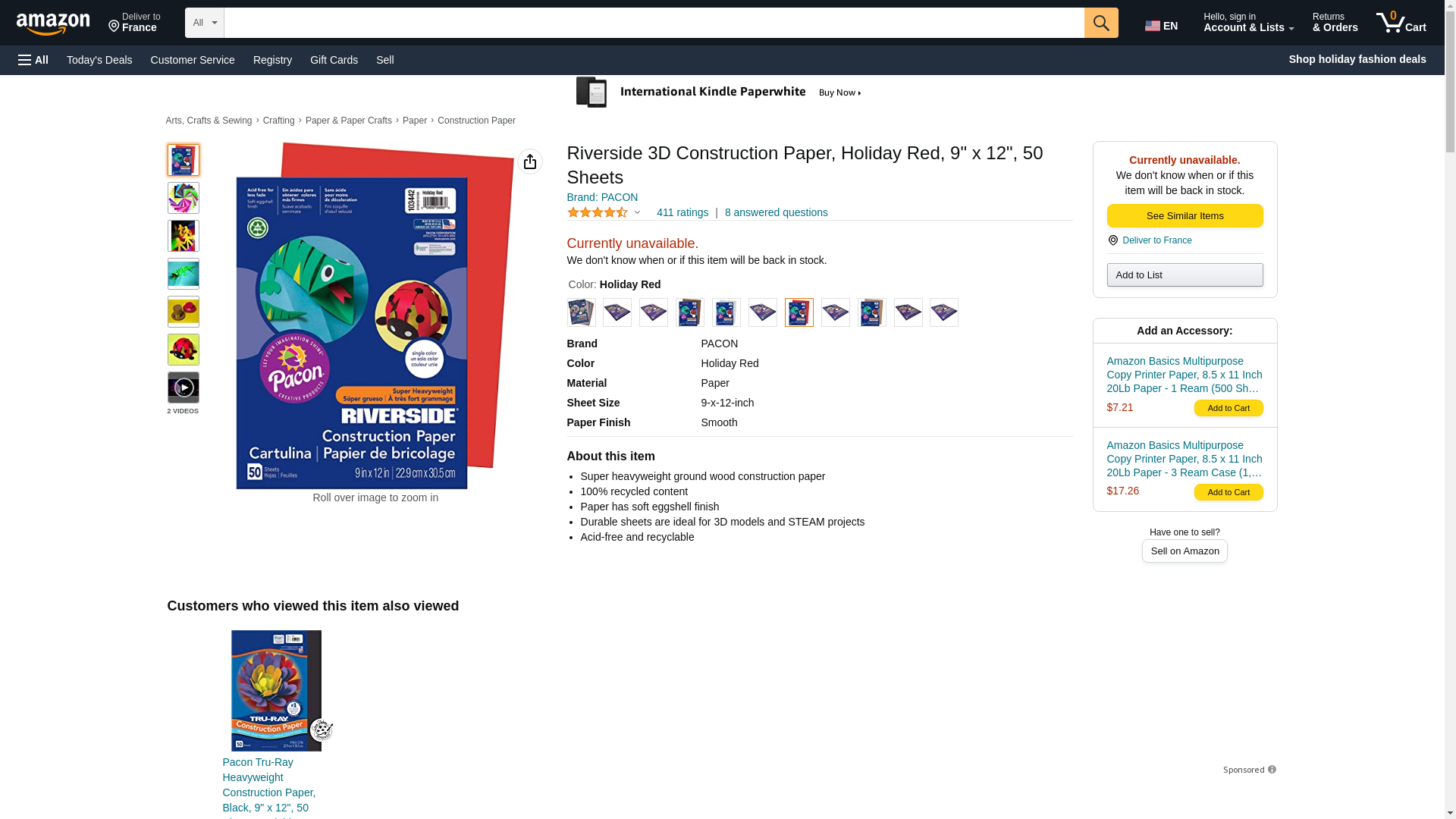 103442 Features: -Sheets per unit: 50. -Made in USA. -Paper color(s): Holiday Red. -Sheet Size (W X H): 12 In X 9 In. -Category: Crafting. Country of Manufacture: -United States. Dimensions: -12.1'' D, 76 lbs. Overall Height - Top to Bottom: -0.4". Overall Width - Side to Side: -9". Overall Product Weight: -0.91 lbs.