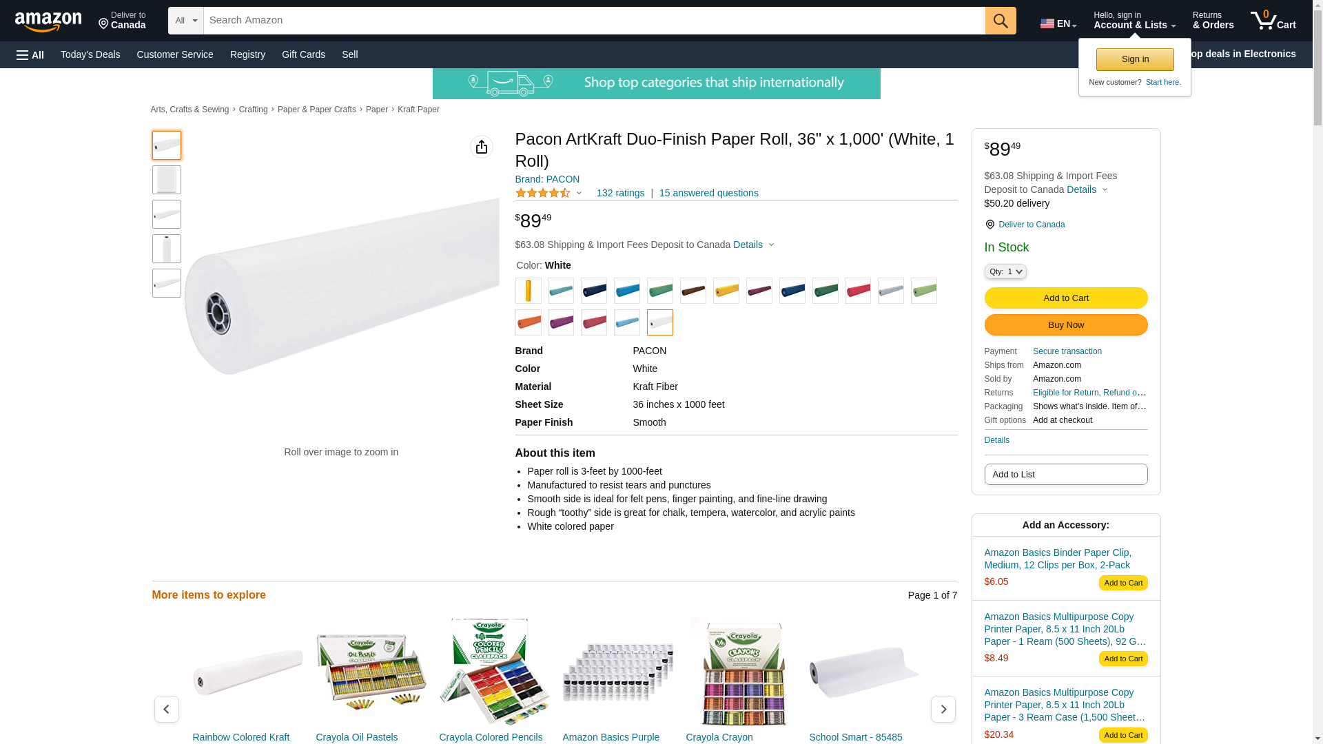 Pacon 67001 Spectra ArtKraft Duo-Finish Paper, 48 lbs., 36-Inch x 1000 ft, White