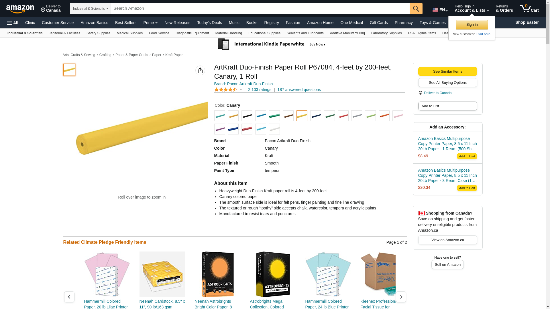 ArtKraft Duo-Finish Paper Roll P67084, 4-feet by 200-feet, Canary, 1 Roll