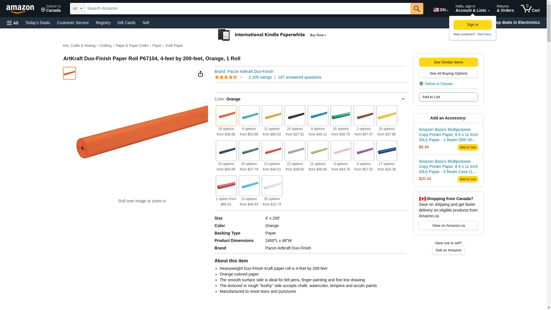 ArtKraft Duo-Finish Paper Roll P67104, 4-feet by 200-feet, Orange, 1 Roll