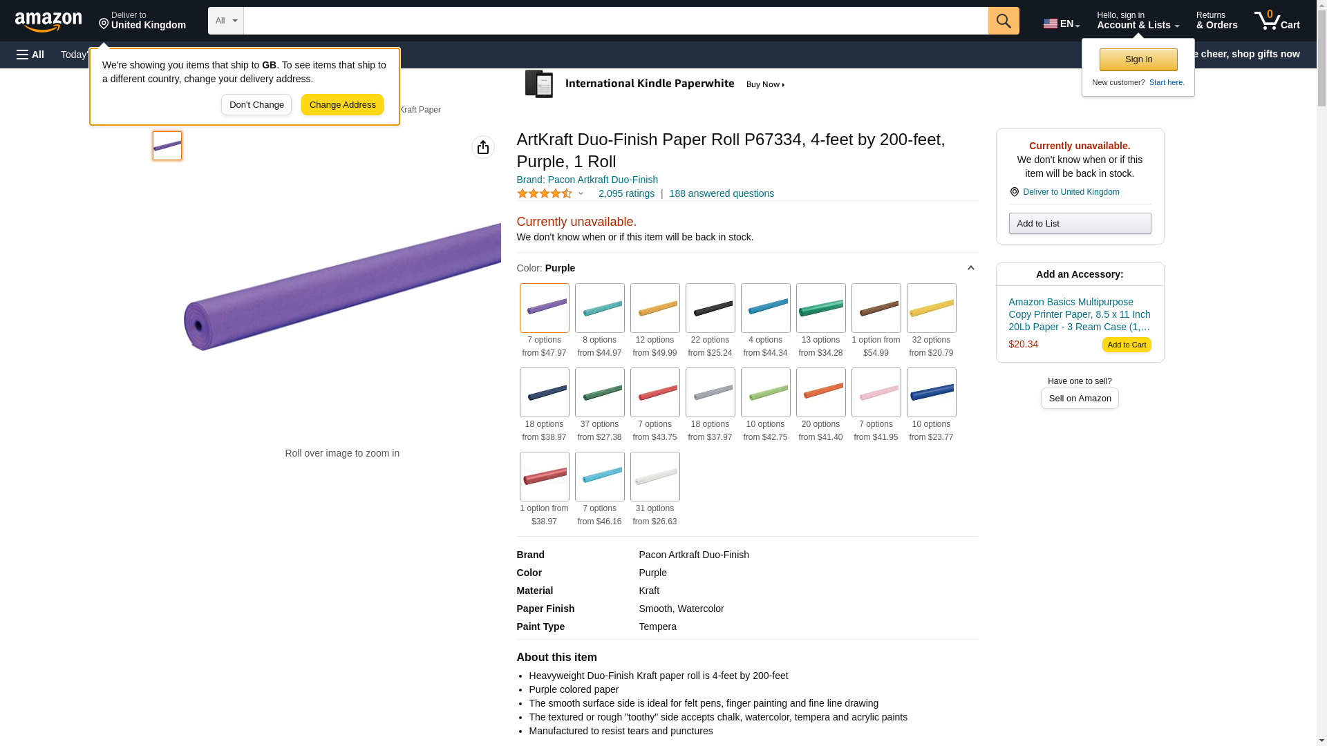 Heavyweight Duo-Finish Kraft paper. The smooth surface side is ideal for felt pens, finger painting and fine line drawing the textured side accepts chalk, watercolor, tempera and acrylic paints. Size: 48amp;quot; x 200 ft Paper Colors: Purple Paper Weight: 48 lb Rolls Per Unit: 1.