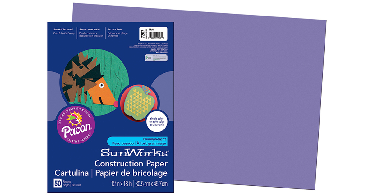 SunWorks 7207 Construction Paper, 58 lbs, 12 x 18, Violet, 50 Sheets/Pack