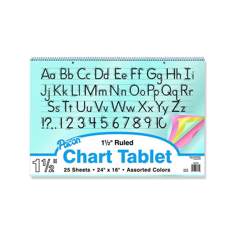 Pacon PAC74734BN Chart Tablet, Manuscript Cover, Assorted 5 Colors Inside, 1-1/2" Ruled, 24" x 16", 25 Sheets, Pack of 2