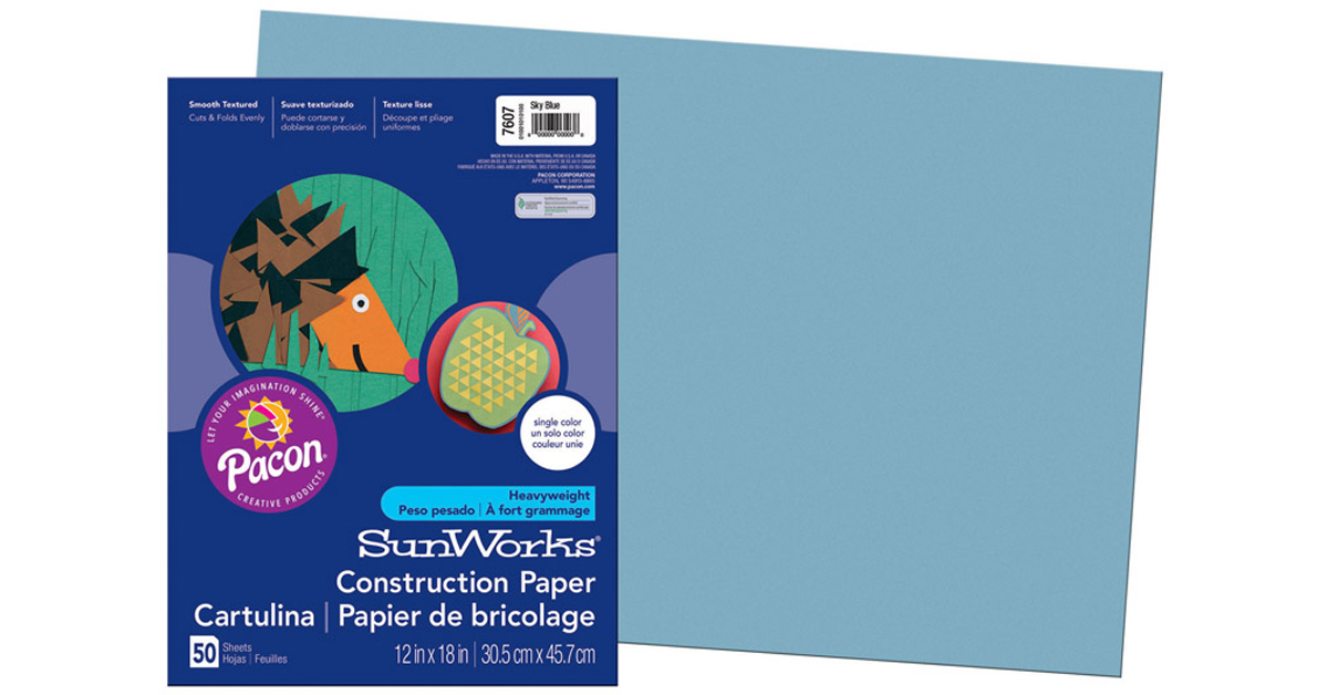 SunWorks 7607 Construction Paper, 58 lbs, 12 x 18, Sky Blue, 50 Sheets/Pack