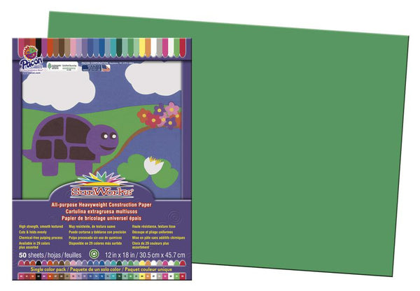 SunWorks 8007 Construction Paper, 58 lbs, 12 x 18, Holiday Green, 50 Sheets/Pack